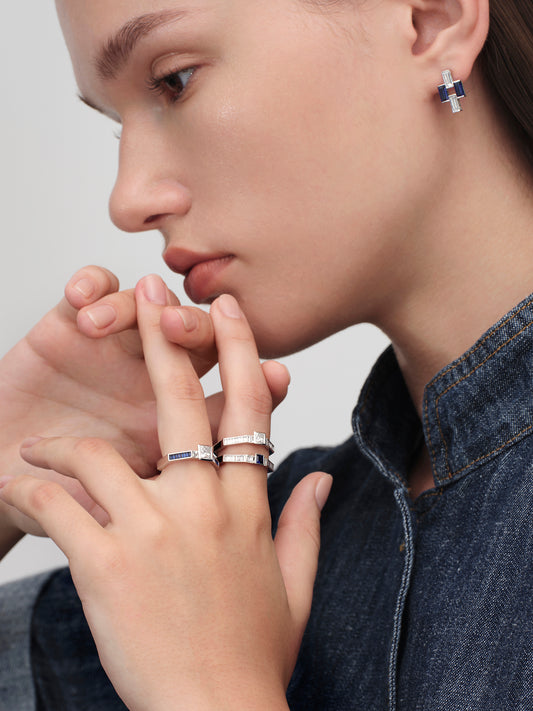 Designed with sharp and clean geometric lines, inlaid with lab-grown diamonds of angular cuts, Gemorro’s products enable women wearing diamonds effortlessly as an everyday fashion, showing graceful women strength.
